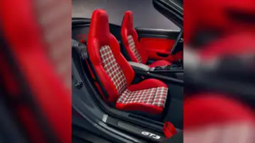 Ultra-lightweight carbon fiber “bucket” seats are available, reinforcing the focus on driving.