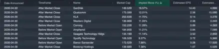 | Name | Market Cap | Reporting Date | Month-to-Date Return | Implied Move |
