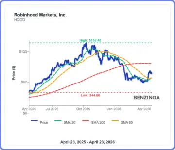 After peaking near $158 in November 2025 and getting cut nearly in half by February 2026, HOOD has been recovering inside a rising channel from the $63 lows.