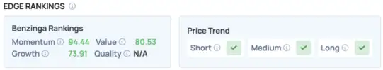 The latest Benzinga Edge Stock Rankings reveal a full update on STNG's price structure, showing that Scorpio Tankers' short-, medium- and long-term trends have all turned positive.