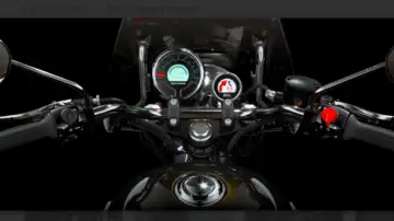 The Classic 350 has a standalone, analogue speedometer, with squarish digital display positioned underneath. Its digital display also has the standard readouts. The Tripper navigation display is on the right side as well, but on the Classic, everything, even the keyfob, is positioned inside a triangular panel.