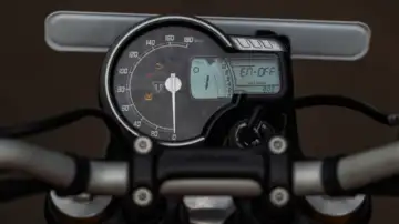 Triumph Speed 400 has a switchable traction control system. It detects unintended wheel spin and modulates power to prevent a slide.