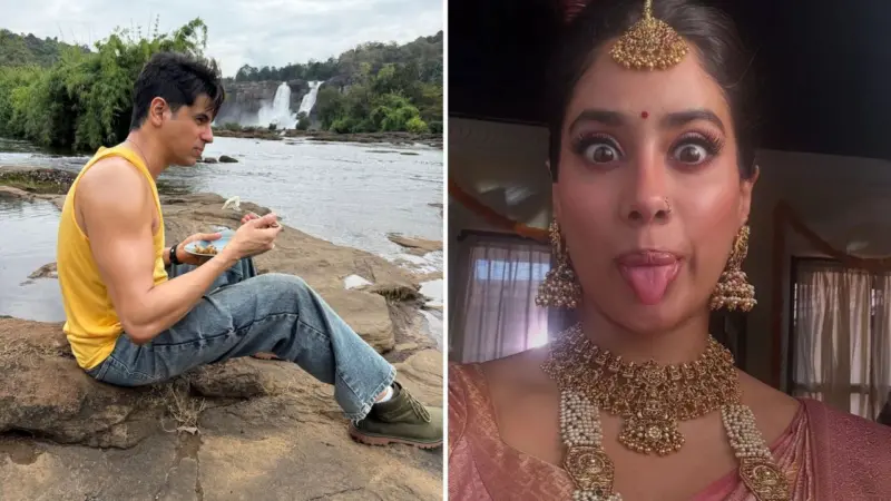 Some time ago fans saw Sidharth and Janhvi on a fun trip to Delhi, grooving with fans on hit tracks from the movie and eating local dishes like Chole Bhature and Rajma Chawal. Janhvi kept her look simple in a saree with minimal makeup and shared glimpses from the trip captioned 'Dilli'.(Athirappilly Waterfalls shooting location)