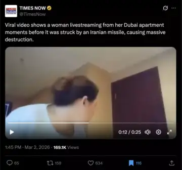 The video was reported by outlets including Times Now, Republic TV, News X, Pune Times Mirror, and Lokmat Times, claiming it captured the moment an Iranian missile hit a residential building in Dubai during the livestream.