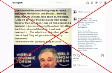 A post on Instagram claims that French economist Jacques Attali discussed depopulating the planet by orchestrating a pandemic in his book "The Future of Life" published in 1981. This is false: while Attali was interviewed in a book called "Future Life" (first published in French as "L'Avenir de La Vie" in 1981), he did not write it, and he does not mention depopulation in his interview.