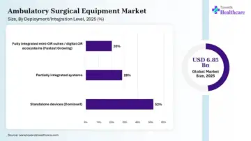 The ambulatory surgical equipment market in India is advancing due to a shift towards outpatient and minimally invasive surgery, and regulatory reforms to ensure safety and boost domestic innovation. The Scheme for Strengthening of the Medical Device Industry was launched by the government of India, which aims to boost domestic manufacturing of high-end equipment and reduce dependency on imports.
