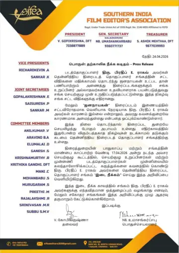 During this suspension period, the SIFEA states that it won't support editor Pradeep's endeavours, and has urged other film associations to stand by the SIFEA's action.