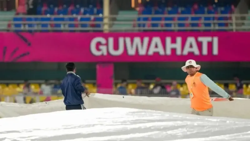 The RR vs MI match in the Indian Premier League 2026 has been delayed due to rain. There is no official confirmation about the timings of the toss as there is still a slight drizzle, with the covers on in Guwahati.