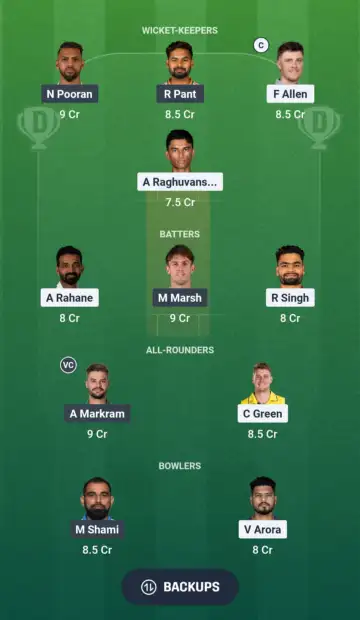 - Keepers - Nicholas Pooran, Rishabh Pant ©, Finn Allen, Angkrish Raghuvanshi