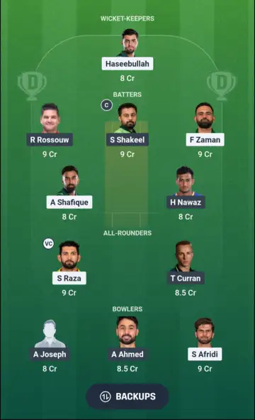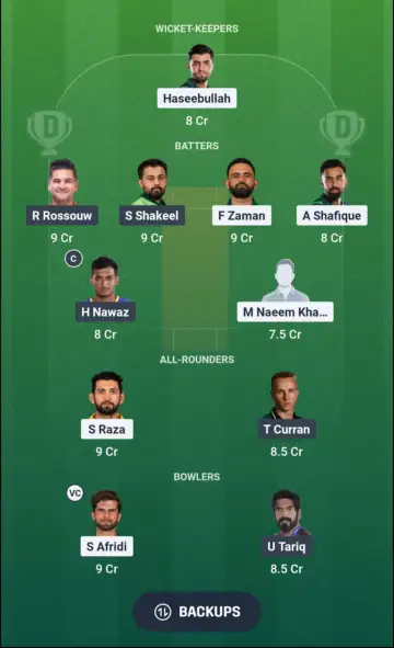 - Batters - Rilee Rossouw, Saud Shakeel, Fakhar Zaman, Abdullah Shafique, Hasan Nawaz ©, Mohammad Naeem