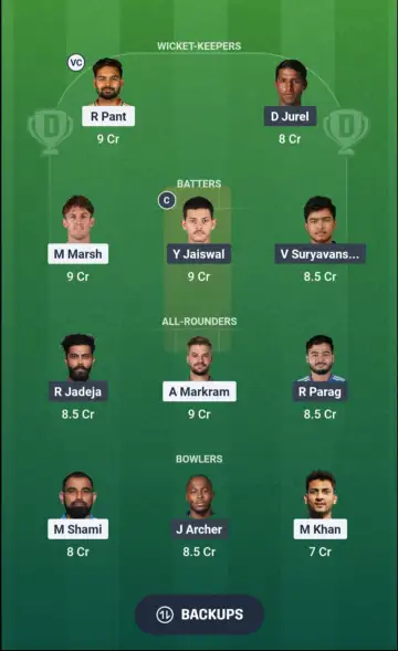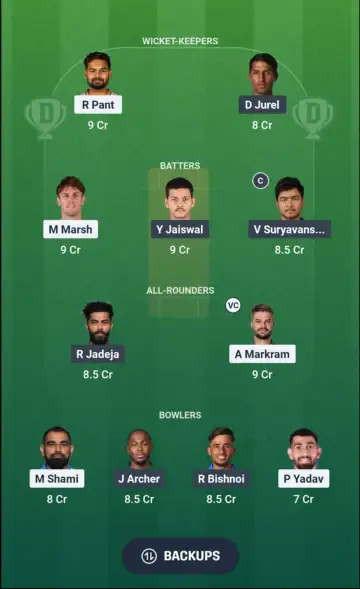 - Bowlers - Mohammed Shami, Jofra Archer, Ravi Bishnoi, Prince Yadav