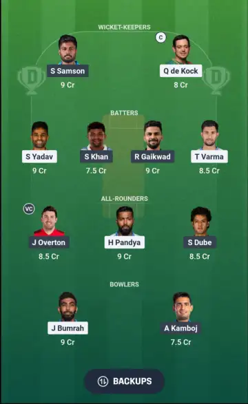 - All-rounders - Hardik Pandya, Shivam Dube, Jamie Overton