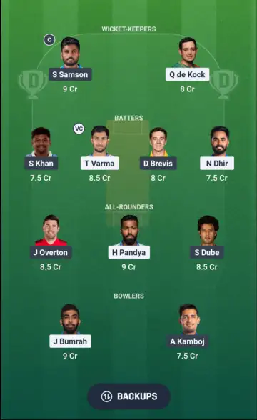 - Bowlers - Jasprit Bumrah, Anshul Kamboj