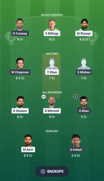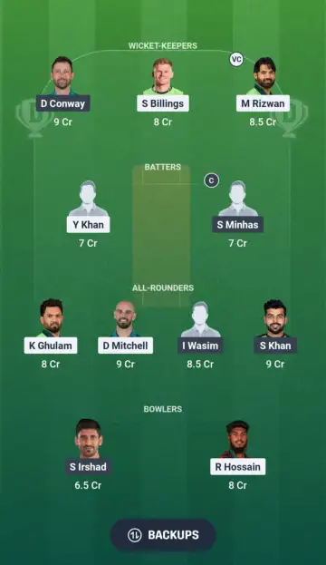 - Keepers - Devon Conway, Sam Billings, Mohammad Rizwan (vc)
