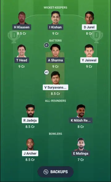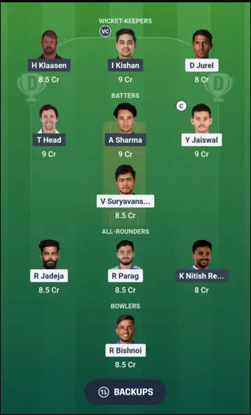 - Batsmen - Travis Head, Abhishek Sharma, Yashasvi Jaiswal ©, Vaibhav Suryavanshi