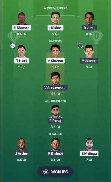 - Batters - Travis Head (vc), Abhishek Sharma, Yashasvi Jaiswal ©, Vaibhav Sooryavanshi