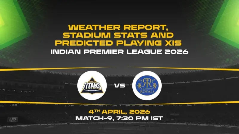 Gujarat Titans will face Rajasthan Royals in Match 9 of the Indian Premier League 2026 on April 4 at the Narendra Modi Stadium in Ahmedabad.