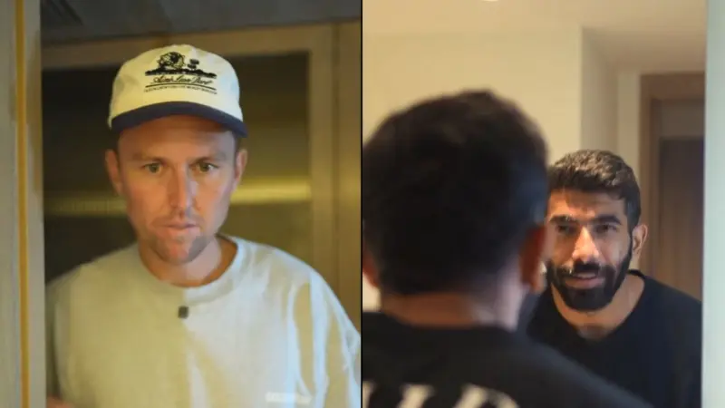 In the video, Jasprit Bumrah is seen cleaning his face, and suddenly Trent Boult, the champion bowler from New Zealand, delivers the same dialogue.