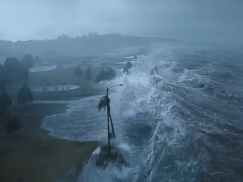 In the trailer, Hounsou shouts, "Sharks on the loose in the Category 5 storm," to express the emergency of the situation.