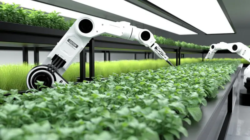 Engineers are designing vertical farms inside urban buildings, where vegetables grow in controlled environments under LED lighting without soil or sunlight.