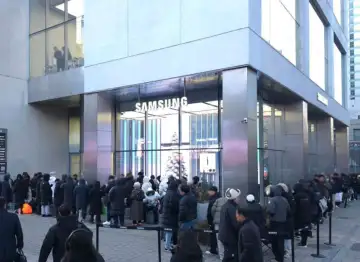 Customers lined up buy Galaxy Z Trifold at Samsung store in Seoul.