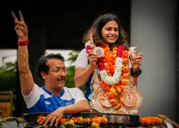 History-making Manu Bhaker arrives home to enthusiastic reception
