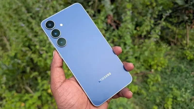 The new Galaxy S25 FE sports a chocolate bar design language with flat edges and curvaceous corners. It has the triple camera islands similar to the premium Galaxy S25 series models.