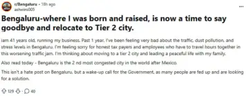 A 41-year-old businessman's reddit post on planning to leave Bengaluru, a city where he was 'born and raised', citing poor living conditions has gone viral online.
