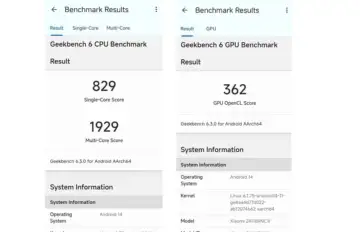 Xiaomi Redmi A4 5G's CPU and GPU performance score on Geekbench 6.0.