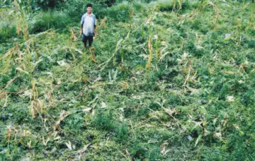 A maize field raided by wild boar in South SikkimThe proximity of the villages to forests that fulfills the resources required for sustaining farming results in human-wildlife interactions which are often negative. Over the years after suffering loss, this interaction which was once of "tolerance" has evolved into "conflict" for farmers. The farms in these villages are frequently raided by wild animals throughout the year. Communities perceive that this is driven by an increase in wildlife population and habitats (forests) that are contiguous with the villages as a result of effective conservation.