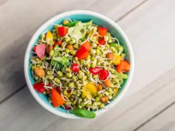 If you're looking for a healthy brunch, sprouts salad is a great option. You need sprouted mung beans or chickpeas to make it. Soak them in advance so you can easily prepare and eat them whenever you're hungry.