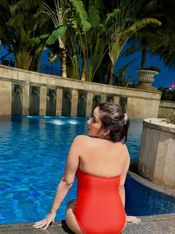 In these pictures, Monalisa is seen striking a series of poses in the swimming pool.