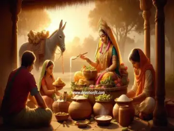 Offering this offering to Mata Shitala Devi protects against smallpox, fever, and skin diseases, and maintains peace and happiness in the family. On the morning of Ashtami, thousands of devotees visit the Mata Shitala Devi temple, perform the rituals, and offer the Basiyoda offering to Mata. This offering is then distributed among the devotees as Prasad, and all the devotees consume it.