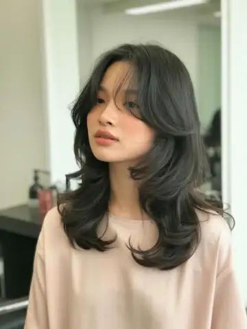The Korean see-through bangs are a popular trend in haircuts with bangs for girls, and people love them for their light and delicate appearance. Unlike other bangs, Korean see-through bangs are cut in a way that they are light and textured, and the forehead is visible through the bangs. The light appearance of the bangs allows them to blend in with the rest of the hairstyle.