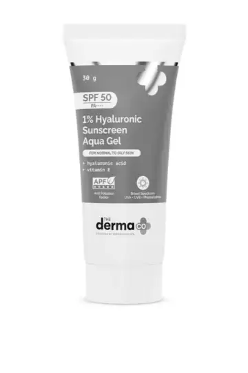 The sunscreen by The Derma Co has moisturizing properties because of the presence of hyaluronic acid in it. The aqua gel-like formula of the sunscreen spreads and absorbs quickly and comfortably onto the skin without making you feel sticky. Ideal for combination to normal skin, providing moisturizing benefits without being greasy.