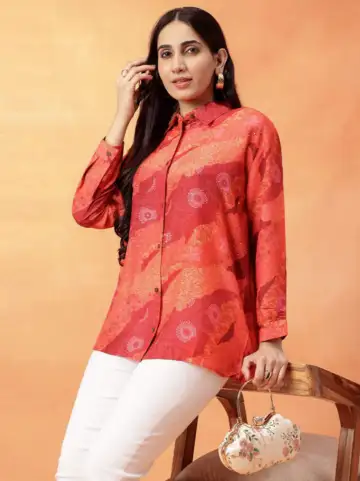 A bright, expressive shirt can instantly make business casual look less safe and much more interesting. The Navyasa by Liva Lustre Wave Red Printed Shirt stands out with its rich red tone, elegant print and delicate sequin embellishments. It adds energy and personality while still feeling wearable through the day, thanks to its breathable fabric.
