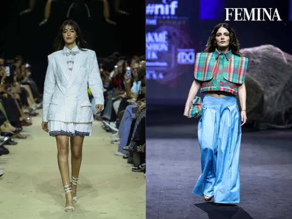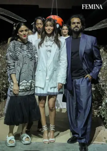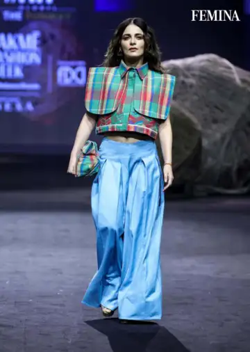 The day was also graced by Radhika Madan, who brought a cool, youthful energy to the runway as the showstopper for designers Mannat Jain and Sneha Ali Shetty. The Angrezi Medium actress made a strong case for Indian textile heritage done right, stepping out in a boxy, cropped shirt crafted in vibrant Madras checks, paired with voluminous, teal pleated pants that added just the right amount of drama. A statement bag in the same checkered pattern tied the look together effortlessly, while platform heels and silver statement earrings added height and a hint of shine.