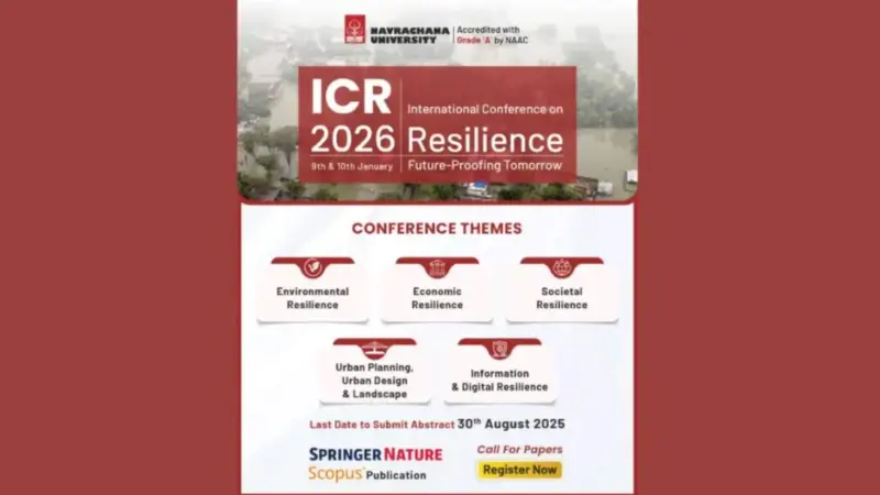 Vadodara: Navrachana University is all set to host the ICR-2026: International Conference on Resilience - a visionary initiative under the university’s flagship experiential learning program, KHOJ. This cross-disciplinary conference reflects the university's deep commitment to integrating curriculum with community engagement.