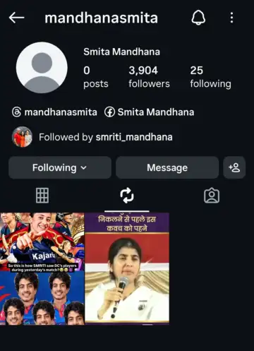 On Friday, a day after the WPL final, a social media meme page shared a meme about Smriti's performance, joking that the way she slammed around the DC bowlers, it seemed she was seeing her ex Palash's face in all of them. Smita Mandhana, Smriti's mother, reposted the meme from her Instagram account, giving it her seal of approval.