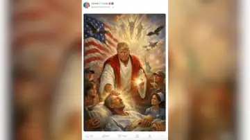 The controversial picture, shared on Trump's Truth Social platform late on Sunday, depicted the president in flowing red and white robes reminiscent of traditional Christ iconography, with his hand resting on a man who appeared to be in distress and light radiating from his palm and head.