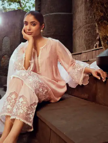 A well-cut kurta - think Raw Mango's architectural tailoring, Sabyasachi's sharper cotton silhouettes or even a crisp, well-fitted handloom piece - instantly lends composure. Pair it with palazzos, straight pants or soft churidars. They don't cling or demand posture.