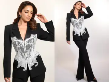 It's an extended era of power pantsuits, and honestly, plain or printed ones are boring. But Kiara most definitely managed to add that major coquette vibe with this blazer that seems to have lace work, giving it a very corset-y vibe, and honestly, it puts the look together just right.