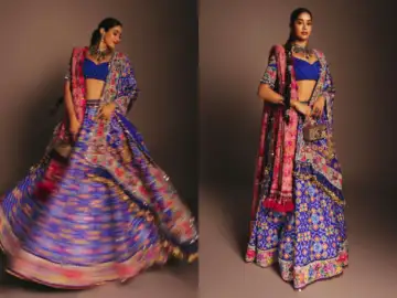 Since Gen Z loves going back to the roots with their desi fits, this custom Patola lehenga from Jigya Patel serves that right. Also, the vibrant colours, the jewellery, and even the hair, it all screams the kind of wedding fit that Gen Z will love and how.
