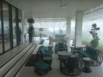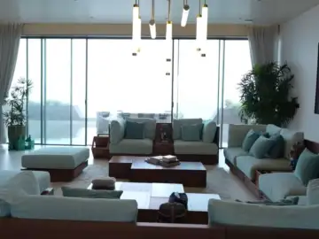 We also get a glimpse of the gigantic living room, a massive sitting area just beside the garden, and a staircase too-with a gorgeous Shiva idol.