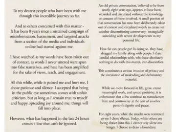 Threatening to take legal action, she went on to say that those circulating have 24 hours to take the defamatory material down.