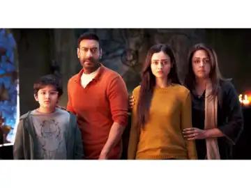 Ajay Devgn and Jyothika play doting parents to their children, Janhvi and Angad, but beyond that, they are also strong people, in general. And therefore, you love that side of them when they are playing protective parents, and while Jyothika doesn't have as much to do, Ajay tries and he gets it right in parts.
