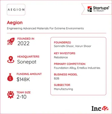To address this gap, Saizal Shoor, Samridhi Shoor and Varun Dev Shoor founded manufacturing-focussed startup Aegion in 2022.