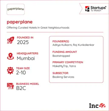 Founded in 2025 by ex-Stoa cofounders Aditya Kulkarni and Raj Kunkolienkar, Paperplane is a travel club and booking platform offering wholesale hotel pricing and curated vacation planning for Indian travellers. The startup operates on a membership model, giving users access to hotel rates that are typically 10-50% lower than prices on platforms like Booking.com, Agoda or MakeMyTrip.