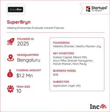 Founded in 2025 by Nikkitha Shanker and Dr Neethu Mariam Joy, SuperBryn is addressing this gap by building a reliability infrastructure that enables enterprises to evaluate, observe and understand why voice agents fail in production and how to fix them.