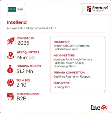 Founded in 2025 by former Quantbox Research CRO Brotish Das, ex-121 Mapping Business Solutions CEO Som Chatterjee and ex-Standard Chartered executive Bodhisattwa Gupta, Intellend partners directly with merchant platforms and financial institutions to deliver affordable credit right when it's needed in a risk-balanced manner.